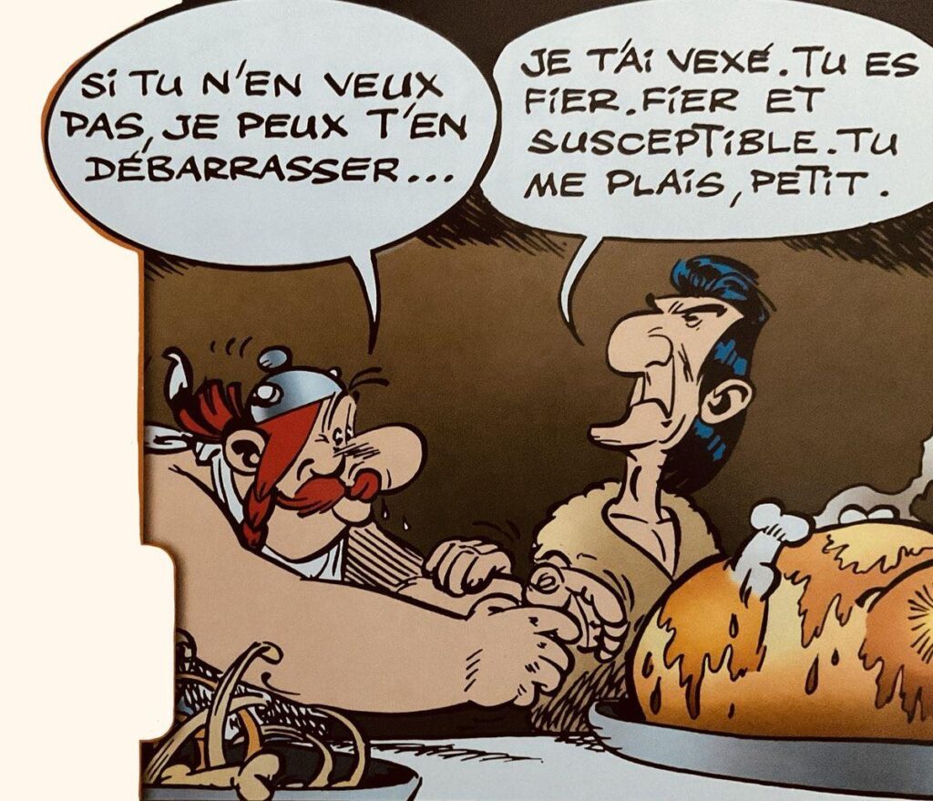 Quand on a sept ans dans les années 80, que l’on commence à peine à savoir lire et écrire et que l’on place dans vos mains un album de Tintin, Astérix ou Lucky Luke, l’univers devient un paradis. Des images et des bulles de textes forment et créent le récit. Chez Tintin, le voyage est contemporain, politique et même onirique au regard d’un univers décalé, une sorte de seconde dimension où l’on se moque du bolchévisme, du capitalisme et autres courants de pensée. Chez Astérix, l’humour sert de pilier porteur pour raconter l’histoire. L’angle est habile, élégant et bienveillant. Alors qu’il est interviewé en 1973 au micro de Paul Giannoli qui lui demande pourquoi à une époque où « la violence, la pornographie et la scatologie triomphent, chez Astérix, c’est tout le contraire… », René Goscinny rétorque : « C’est notre façon à nous d’être d’avant-garde. Je n’ai jamais suivi les modes. Les modes, il y en a eu beaucoup, à présent, il y en a d’autres. Cela dure ce que cela dure. Pour ma part, je continue à faire les choses telles que je les ressens. Disons que le banquet d’Astérix n’a pas nécessité de se transformer en « Grande Bouffe » par exemple !