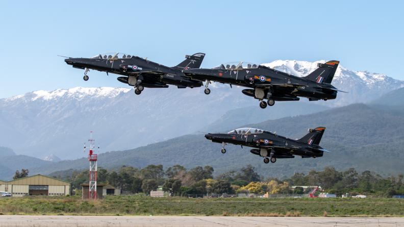 Les avions de chasse britanniques Hawk T2 ont effectué une quarantaine de sorties aériennes au-dessus de l’île. Le déploiement vise à renforcer l’interopérabilité entre les forces armées françaises et britanniques, un objectif qui s’inscrit également dans les grandes lignes du discours d’Emmanuel Macron, le 2 mars, depuis la base militaire de l’Ile Longue dans le Finistère, plaidant pour une nouvelle doctrine dite de la « dissuasion avancée » mais aussi dans le cadre du partenariat franco-britannique des accords de Lancaster House, signés en novembre 2010, visent à renforcer la coopération militaire et de défense entre les deux pays. Ils prévoient notamment le partage de capacités militaires, le développement conjoint d’armements et une collaboration accrue en matière de dissuasion nucléaire. L’un des piliers de ces accords est la création de la Force expéditionnaire conjointe franco-britannique (Combined Joint Expeditionary Force – CJEF), une force binationale conçue pour mener des opérations militaires conjointes de haute intensité : « Opérationnelle depuis 2020, la CJEF incarne l’engagement franco-britannique en faveur d’une défense européenne renforcée et d’une capacité d’intervention autonome sur la scène internationale. » précise le Ministère des Armées.